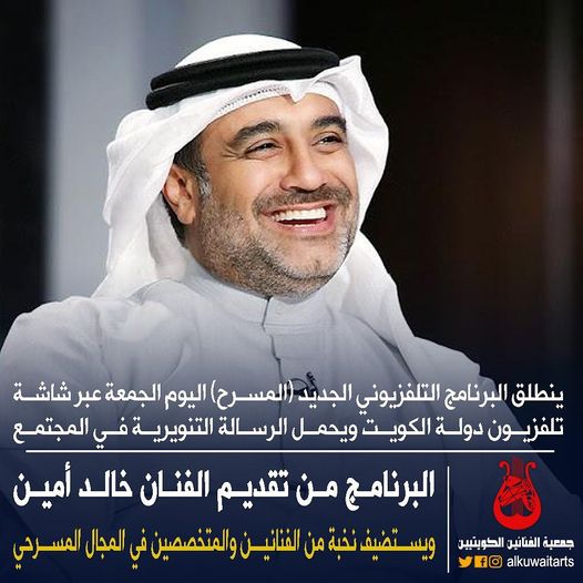 الاخبار ينطلق البرنامج التلفزيوني الجديد (المسرح) اليوم الجمعة عبر شاشة تلفزيون دولة الكويت ويحمل الرسالة التنويرية في المجتمع البرنامج من تقديم الفنان خالد أمين ويستضيف نخبة من الفتانين والمتخصصين في المجال المسرحي أكتوبر 15, 2021