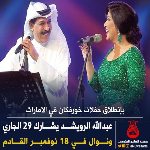 الاخبار بإنطلاق حفلات خورفكان في الامارات عبدالله الرويشد يشارك 29 الجاري ونوال في 18 نوفمبر القادم أكتوبر 27, 2021
