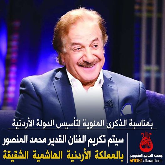 الاخبار بمناسبة الذكرى المئوية لتأسيس الدولة الأردنية سيتم تكريم الفنان القدير محمد المنصور بالمملكة الأردنية الهاشمية الشقيقة أكتوبر 27, 2021