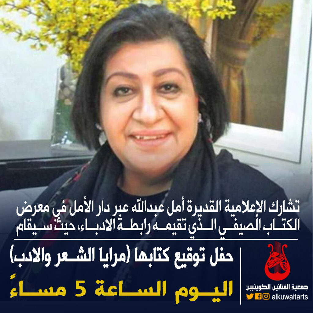 تصفّح المقالات تتقدم جمعية الفنانين الكويتيين بخالص العزاء والمواساة إلى الفنان عبدالعزيز الحداد، لوفاة أبن شقيقه رحمه الله يتقدم رئيس وأعضاء مجلس إدارة جمعية الفنانين الكويتيين بخالص العزاء وصادق المواساة إلى مقام حضرة صاحب السمو أمير البلاد المفدى الشيخ نواف الاحمد الجابر الصباح (حفظه الله ورعاه)، وإلى سمو ولي العهد الأمين الشيخ مشعل الأحمد الجابر الصباح (حفظه الله)، وإلى أسرة آل الصباح الكرام، بوفاة المغفور لها بإذن الله تعالى الشيخة بدرية الأحمد الجابر الصباح